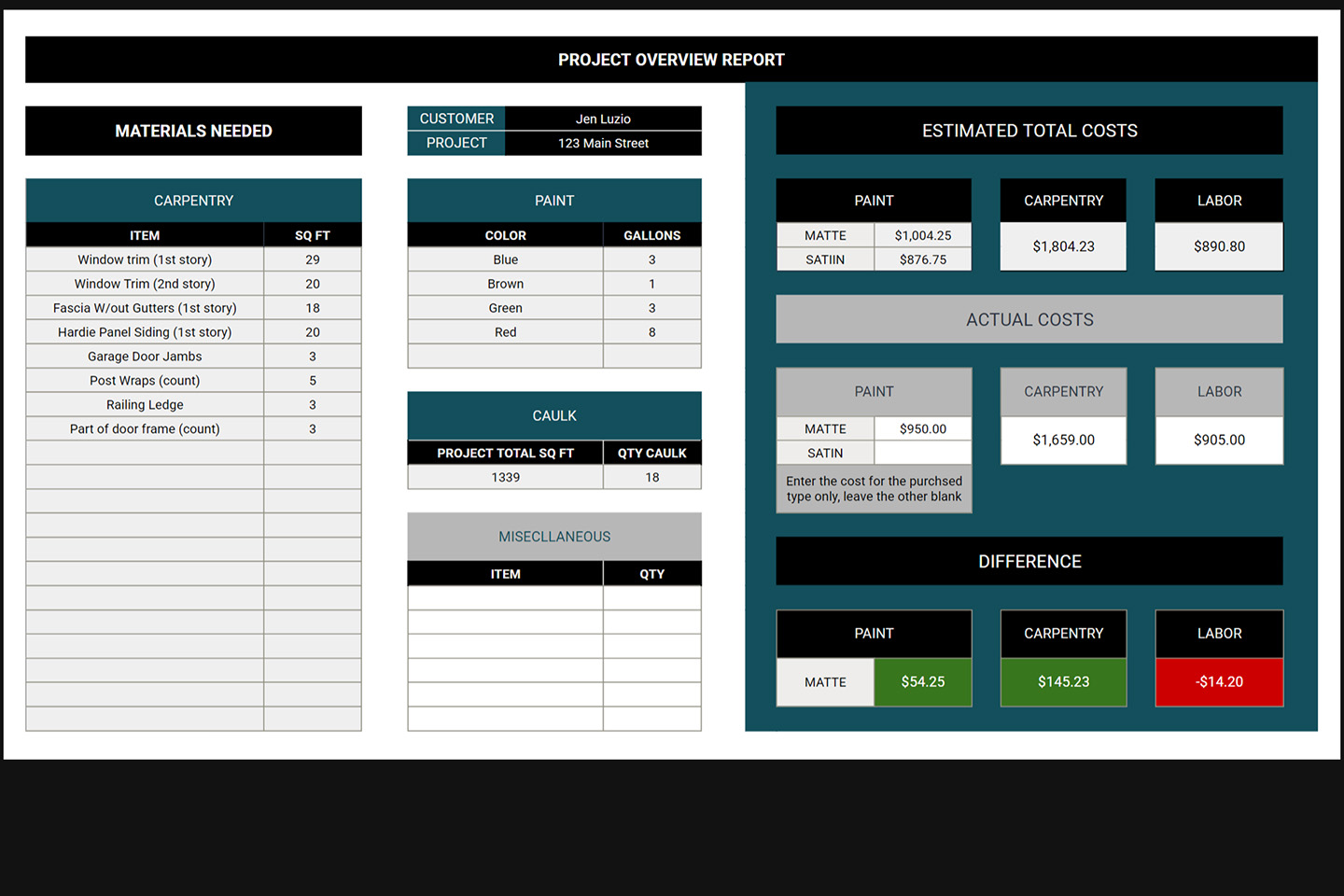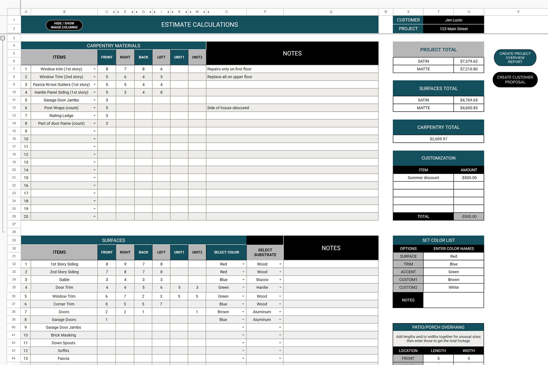 Each completed estimation outputs to a printable PDF with just the details you want the customer to see. Optional outputs can be created for contractor proposals, project managers, material orders, and more.