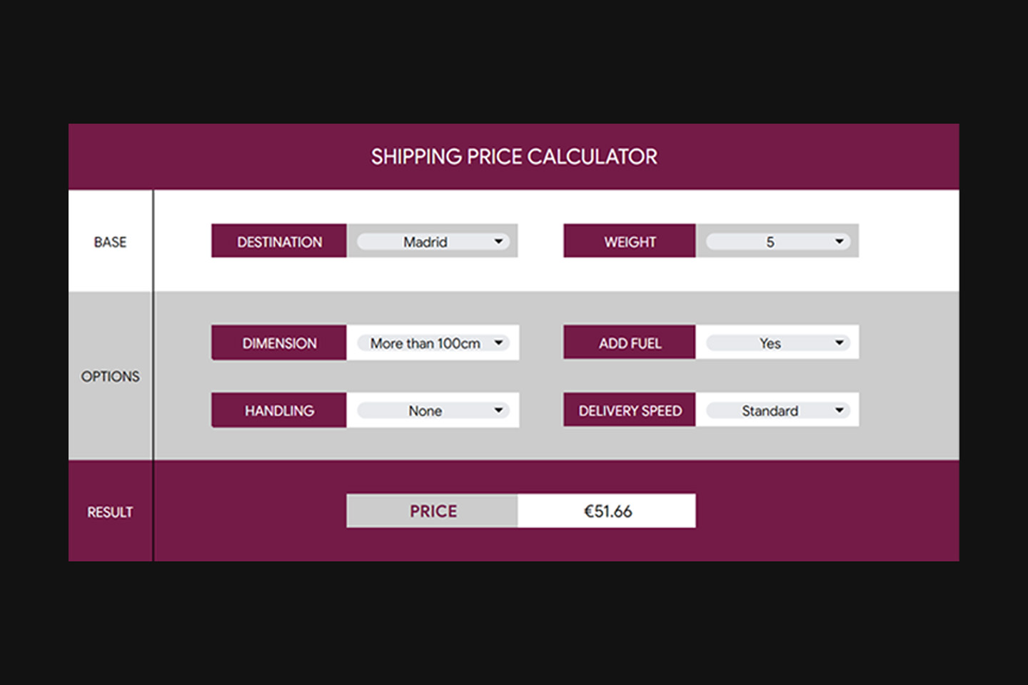 We will set up lists of data that can be selected in the calculator in separate tabs. That way you can add or remove items, change variables like costs, and the calculator will reflect that data immediately.